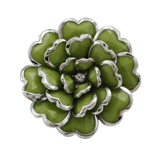 Безразмерное кольцо с крупным зелёным цветком, лепестки которого расположились в три ряда. Сердцевиной цветка служит белый переливающийся страз.