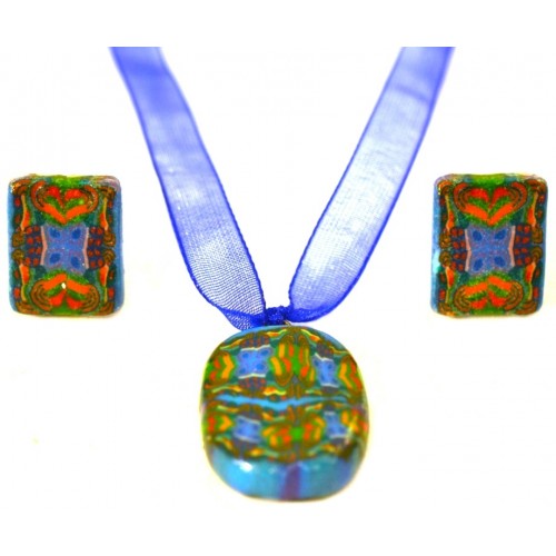 Комплект украшений представлен колье и серьгами-гвоздиками, выполненными из высококачественной японской полимерной глины.