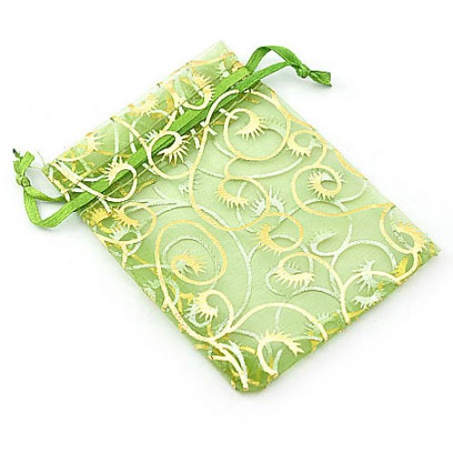 К примеру, этот марлевый мешочек зеленого цвета с золотым цветочным рисунком имеет восточный колорит и не лишен романтизма.